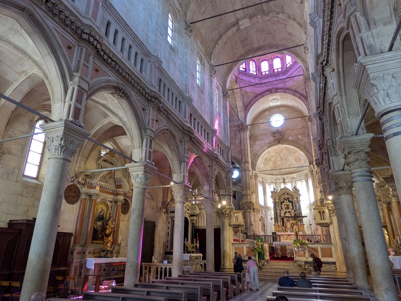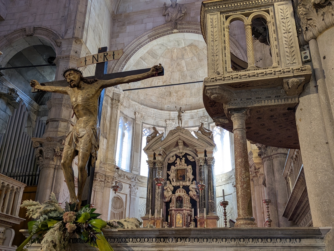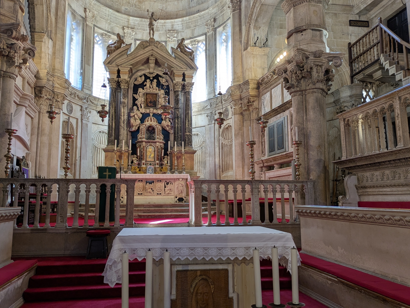 Another notable feature of the cathedral is its dome, which is one of the largest in Europe. It was designed by Nikola Firentinac and is made up of 72 stone blocks, each weighing around 14 tons. The dome is supported by a system of ribs and is decorated with 16th-century frescoes depicting scenes from the life of Jesus.