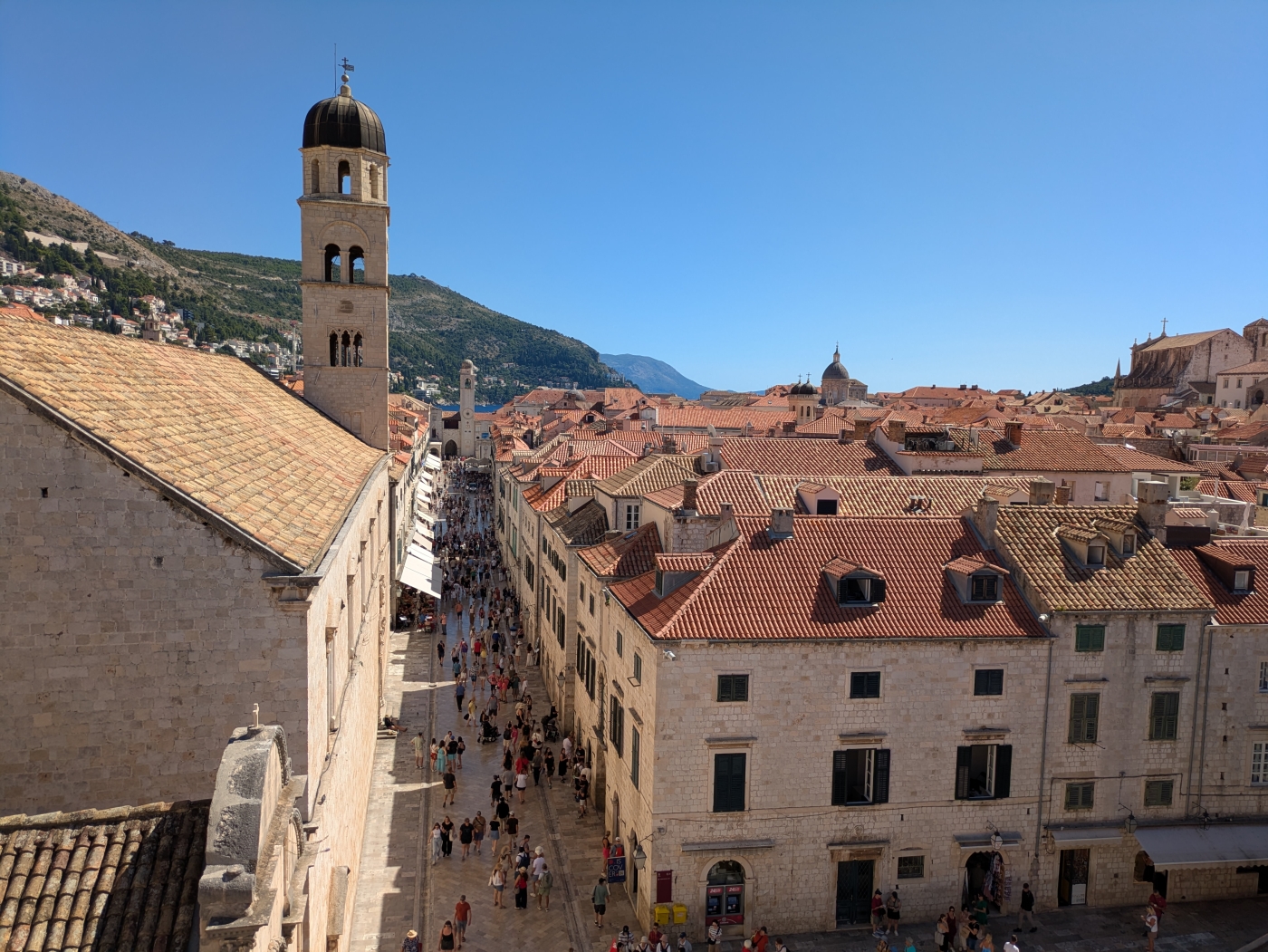 Today, Dubrovnik is renowned for its beautiful architecture and rich cultural heritage. The Old Town, surrounded by the impressive walls that have protected it for centuries, is a maze of narrow streets, charming squares, and historic buildings. One of the most iconic landmarks is the Stradun, the main street of the Old Town, lined with elegant stone houses and bustling with cafes, restaurants, and shops.